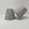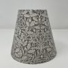 Grey acorn candle clip lampshades in a William Morris design.