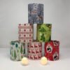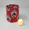 Standing 12cm tall and 10cm in diameter, these cute lanterns are handmade in a Christmas fabric and come complete with a battery powered LED candle and a spare.