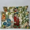 Handmade envelope cushion in a Frida Kahlo design called Fridas Garden. Made in the cream colourway with a plain cream reverse.