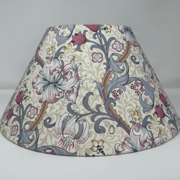 Golden Lily coolie lampshade in Dove and Plum. In stock and ready for next working day dispatch.