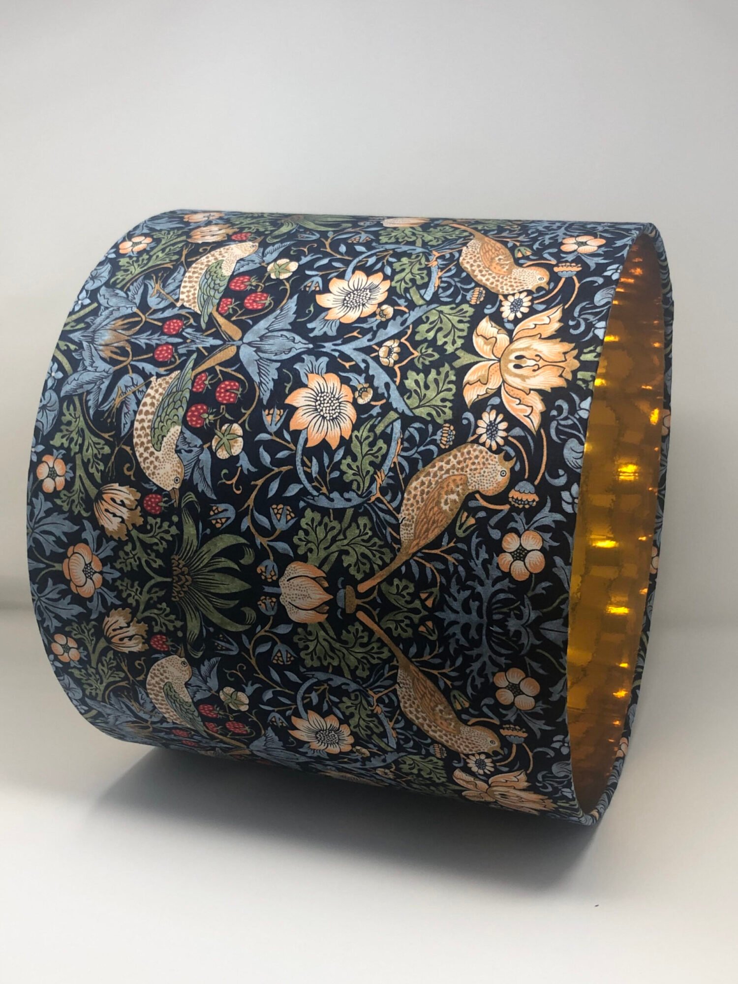 Strawberry Thief lampshades are one of our best selling designs and it’s available in 5 colourways. This listing is for the Indigo Strawberry Thief lampshade.